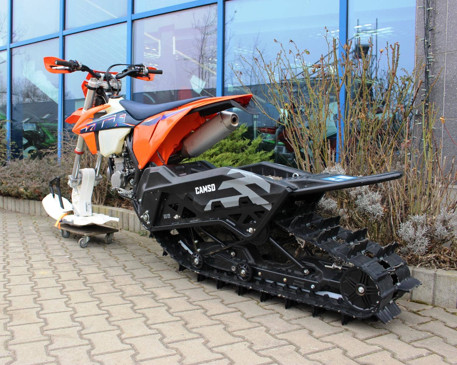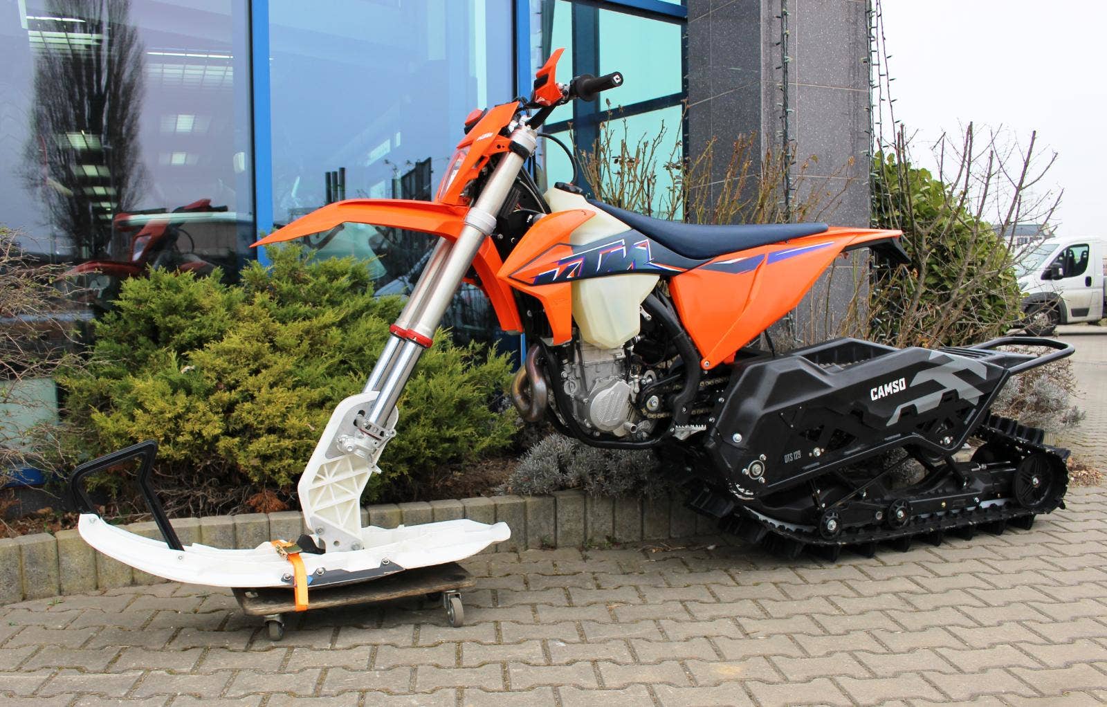 KTM 500 EXC se sněžným pásem CAMSO DTS 129.