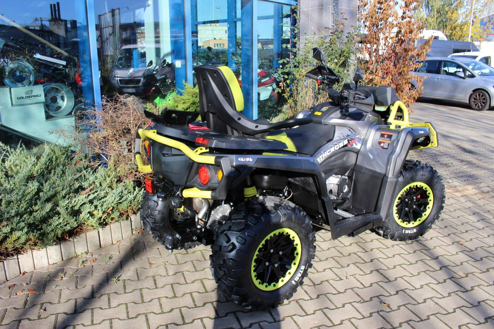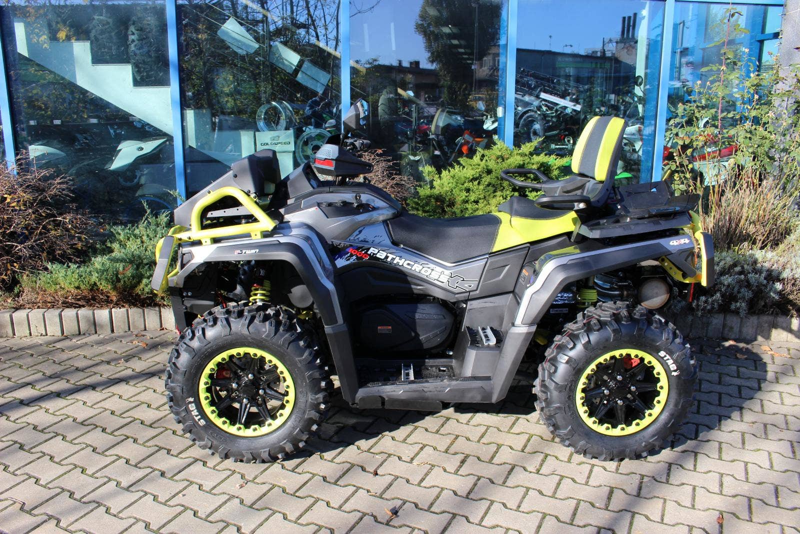 Pneumatiky: 27×9-14 vpředu a 27×11-14 vzadu / značka CST-Behemoth