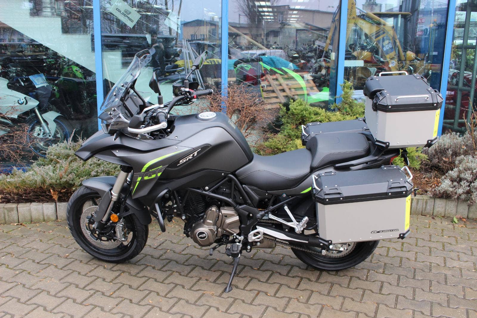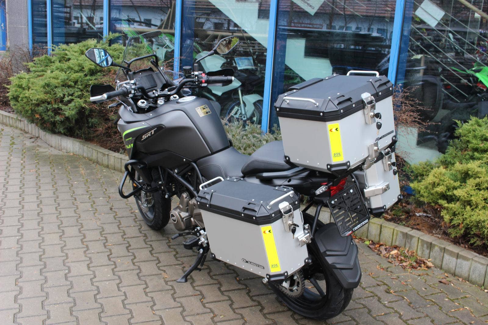 Cena SRT 700 včetně sady 3ks kufrů!!! Tato cena platí při objednání nového motocyklu v kompletu s 3mi originálními kufry.