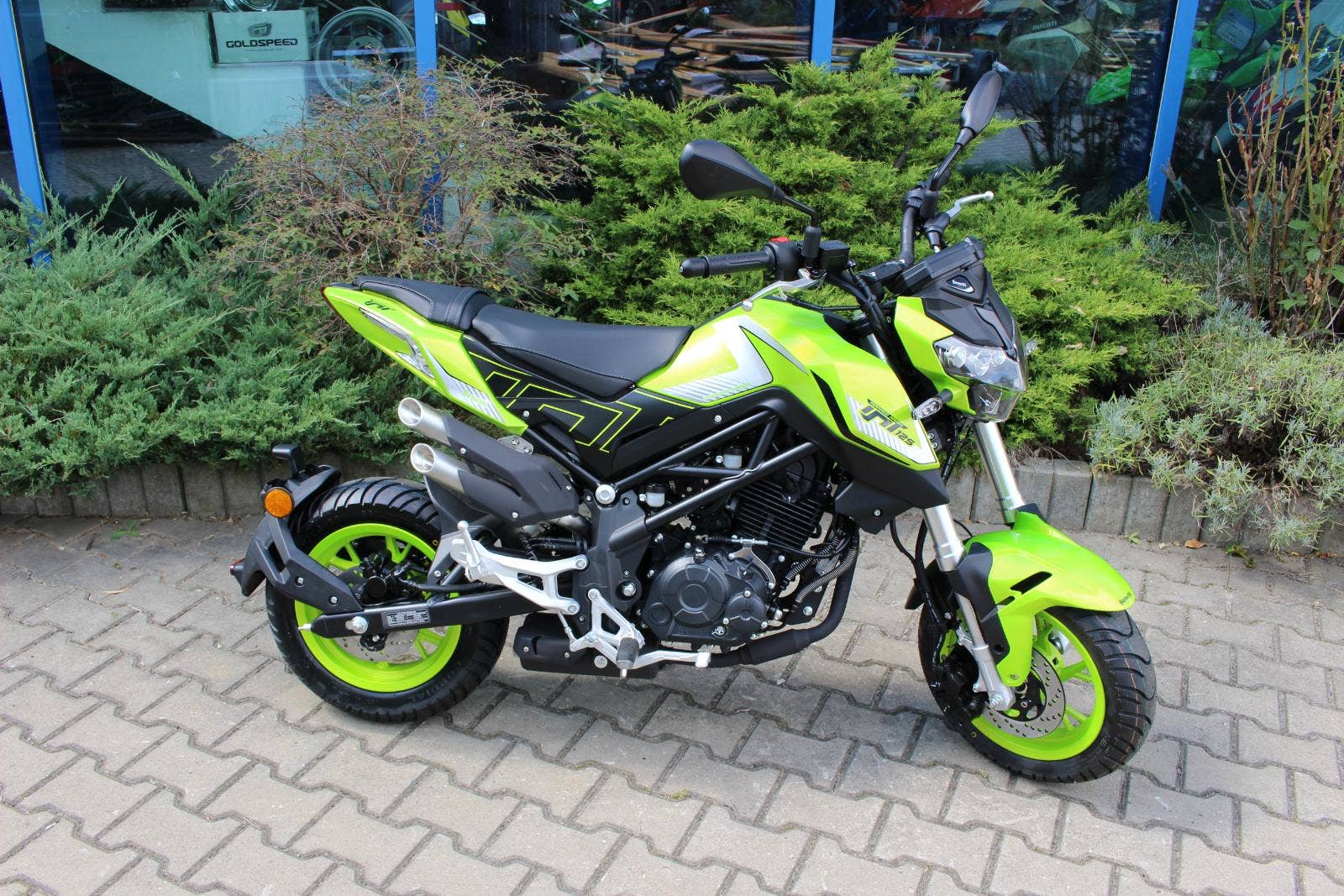 Dobrá značka musí mít ve svém portfoliu i dobrý motocykl o obsahu 125 ccm. Tento motocykl je velmi zajímavý tím, že je osazen hi-tech komponenty – čtyřventilovým motorem se vstřikováním a olejovým chlazením, seřiditelnými předními upside down tlumiči a 12“ koly s kotoučovými brzdami na obou kolech. Je to motocykl hravý a díky své velikosti i velmi dobře ovladatelný, je předurčen do města a na čistou zábavu, nebo třeba i do obytného auta.