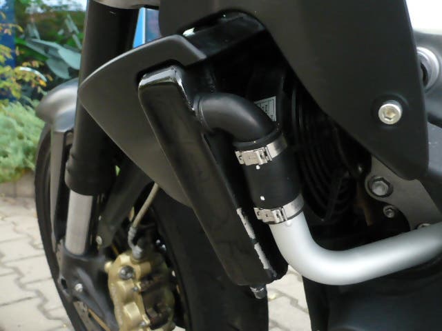 Hezký motocykl, výfuky akrapovic, lehký pád na levou stranu, odřený výfuk, promačklý chladič,